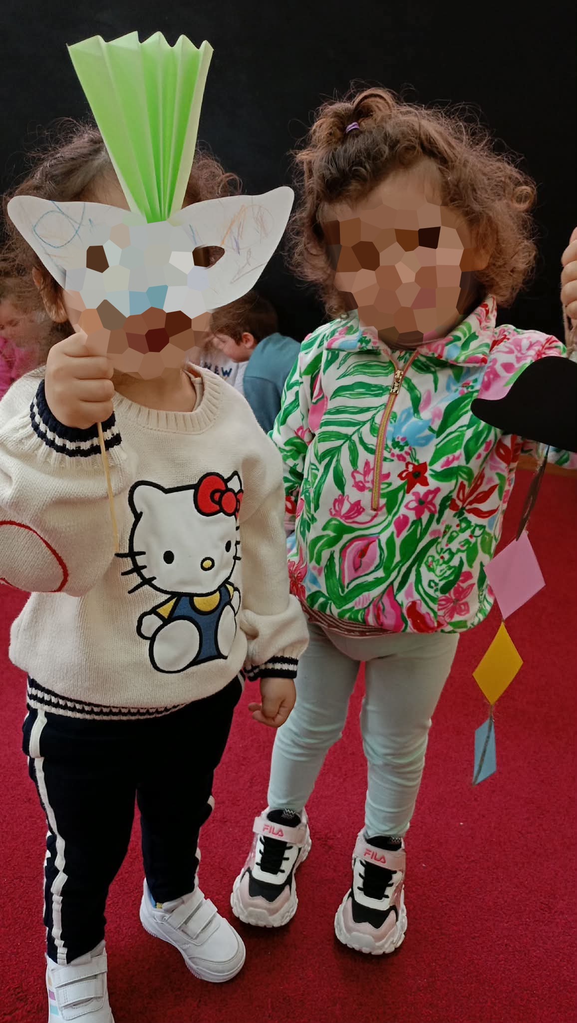 Παράλληλα, δημιουργήσαμε ευφάνταστες αποκριάτικες κατασκευές, δίνοντας στα παιδιά την ευκαιρία να εκφραστούν καλλιτεχνικά, να πειραματιστούν με υλικά και χρώματα και να αναπτύξουν τη φαντασία και τη δημιουργικότητά τους. Μάσκες, καπέλα, κλόουν και σερπαντίνες γέμισαν τις τάξεις μας!