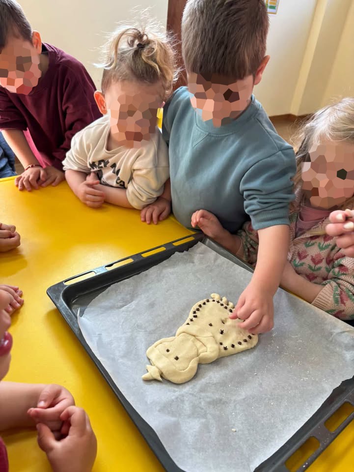 Ξεχωριστή θέση στις δράσεις μας είχε και η δημιουργία της Κυράς Σαρακοστής. Αφού μιλήσαμε για τη σημασία της Σαρακοστής και το συμβολισμό των επτά ποδιών, τα παιδιά έφτιαξαν τις δικές τους μοναδικές εκδοχές, χρησιμοποιώντας χαρτί, υφάσματα και φυσικά υλικά. Μετρώντας τα πόδια της κάθε εβδομάδα, προσεγγίσαμε την έννοια του χρόνου με έναν τρόπο κατανοητό και ευχάριστο για την ηλικία τους.