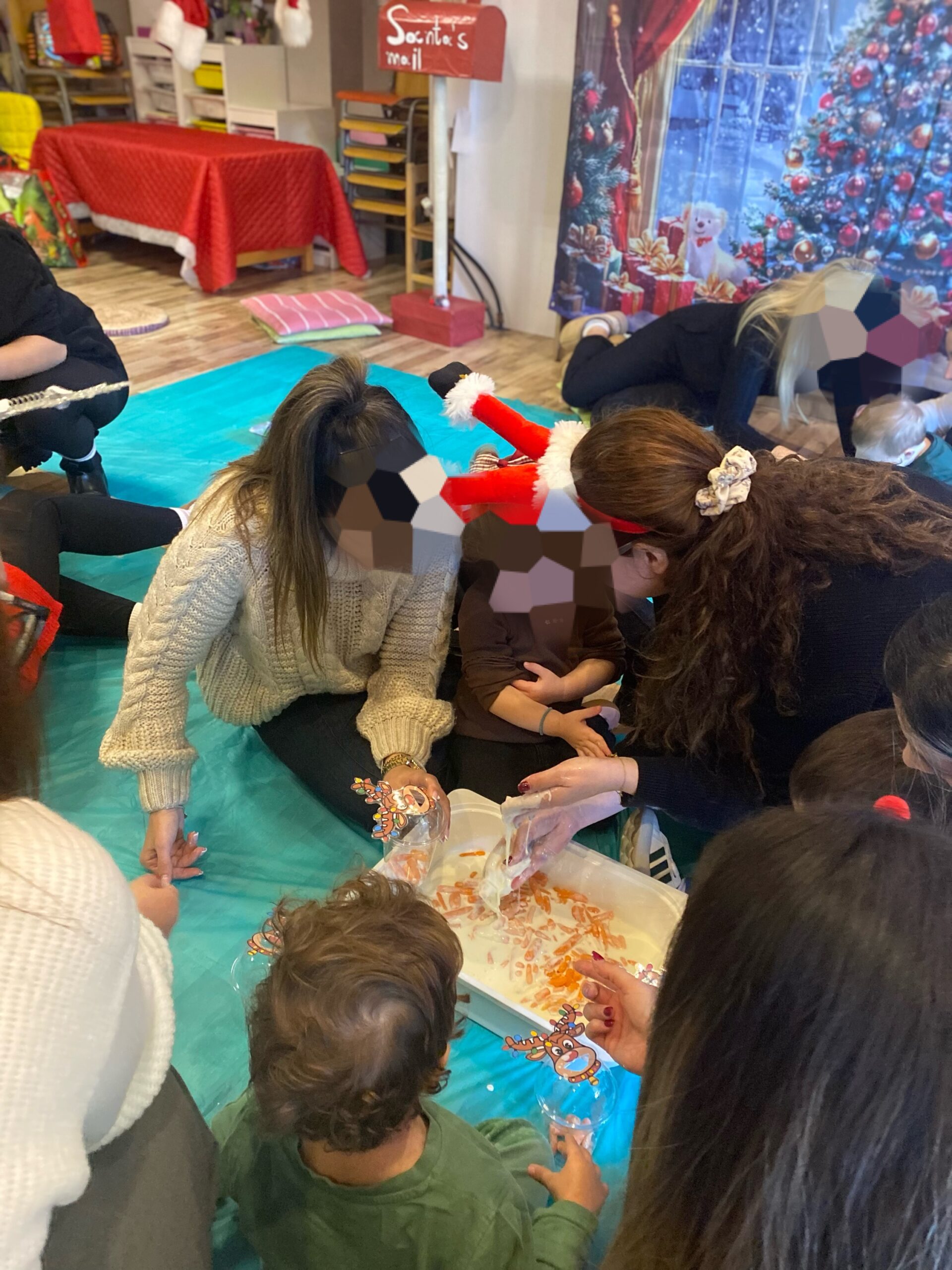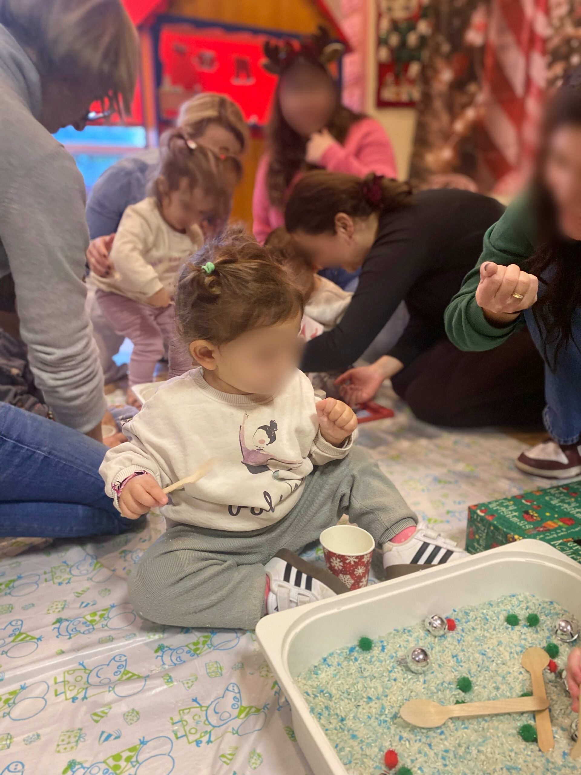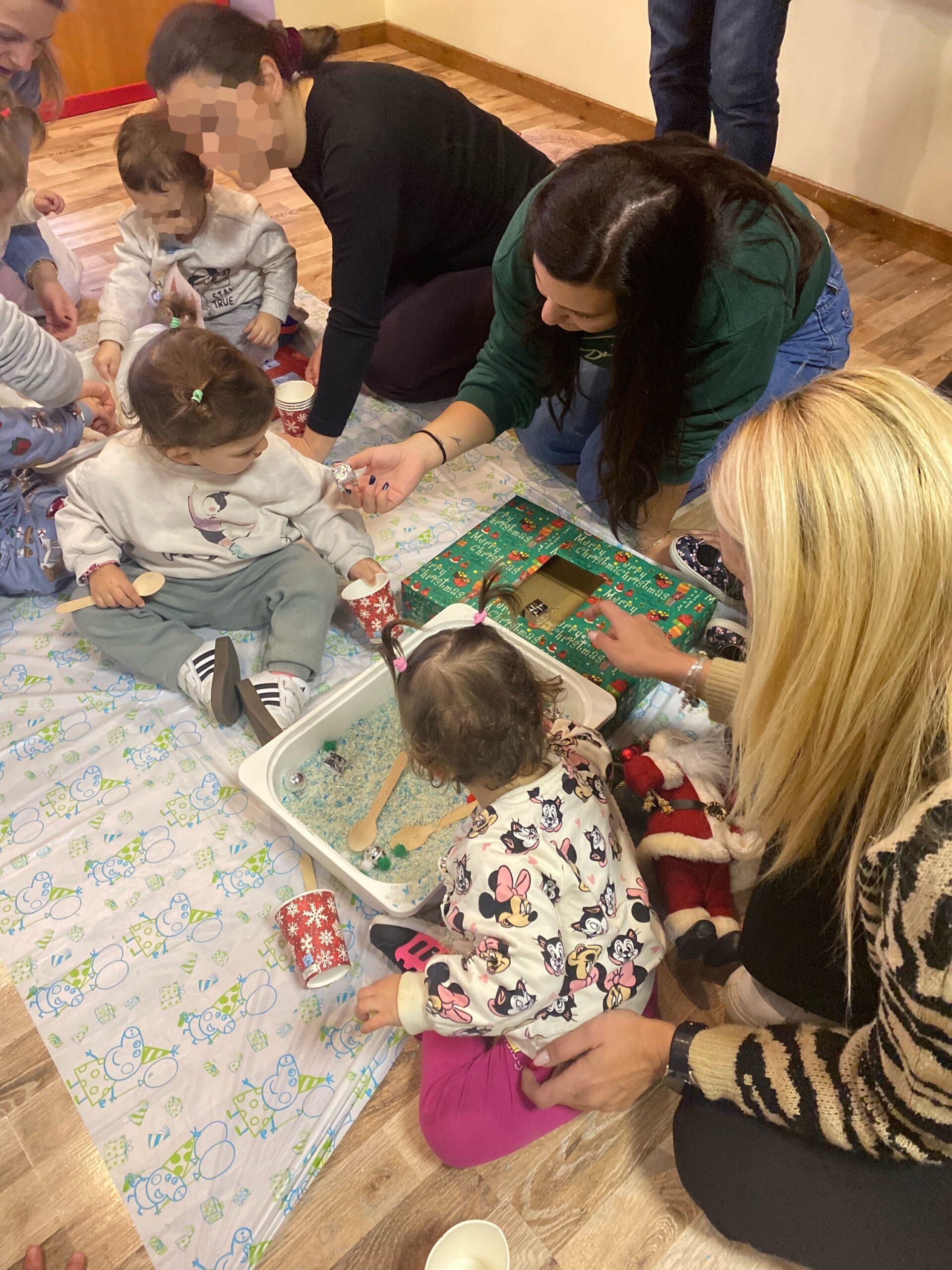 To αισθητηριακό εργαστήριο messy play με χριστουγεννιάτικες νότες σχεδιάστηκε και υλοποιήθηκε από τη Ναταλία Αθανασοπούλου (Λογοθεραπεύτρια με ειδίκευση στο Messy & Sensory Play), σε συνεργασία με τις παιδαγωγούς του σχολείου μας. Στόχος ήταν η ελεύθερη εξερεύνηση, η χαρά του παιχνιδιού και η ενίσχυση της αισθητηριακής εμπειρίας των παιδιών.